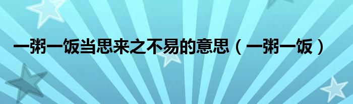 大家好,小君来为大家解答以上问题。一粥一饭当思来之不易的意思,一粥一饭很多人还不知道,现在让我们一起来看看吧!