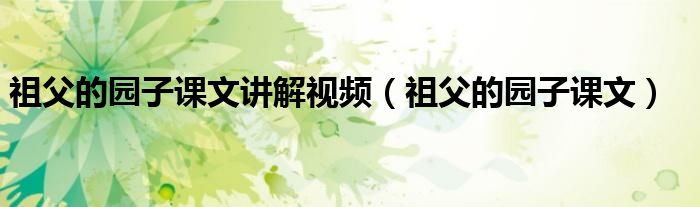 大家好,小君来为大家解答以上问题。祖父的园子课文讲解视频,祖父的园子课文很多人还不知道,现在让我们一起来看看吧!