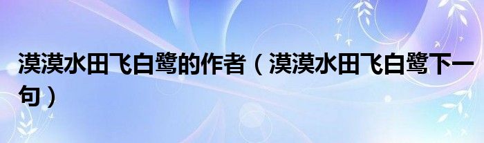 大家好,小君来为大家解答以上问题。漠漠水田飞白鹭的作者,漠漠水田飞白鹭下一句很多人还不知道,现在让我们一起来看看吧!