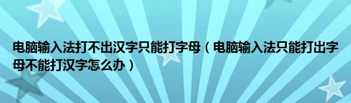 大家好,伊人来为大家解答以上问题。电脑输入法打不出汉字只能打字母,电脑输入法只能打出字母不能打汉字怎么办很多人还不知道,现在让我们一起来看看吧!