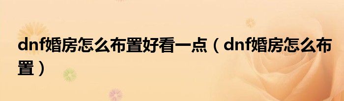 大家好,小生来为大家讲解下。dnf婚房怎么布置好看一点,dnf婚房怎么布置很多人还不知道,现在让我们一起来看看吧!