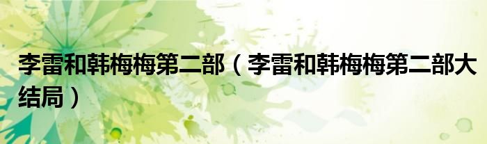 大家好,小生来为大家讲解下。李雷和韩梅梅第二部,李雷和韩梅梅第二部大结局很多人还不知道,现在让我们一起来看看吧!