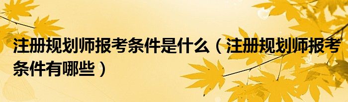 大家好,伊人来为大家解答以上问题。注册规划师报考条件是什么,注册规划师报考条件有哪些很多人还不知道,现在让我们一起来看看吧!