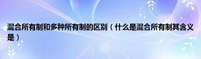 大家好,小生来为大家讲解下。混合所有制和多种所有制的区别,什么是混合所有制其含义是很多人还不知道,现在让我们一起来看看吧!