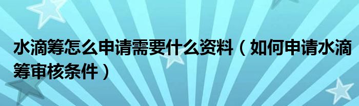 大家好,小生来为大家讲解下。水滴筹怎么申请需要什么资料,如何申请水滴筹审核条件很多人还不知道,现在让我们一起来看看吧!