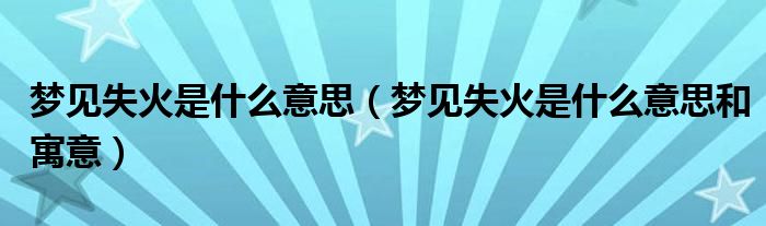 大家好,伊人来为大家解答以上问题。梦见失火是什么意思,梦见失火是什么意思和寓意很多人还不知道,现在让我们一起来看看吧!