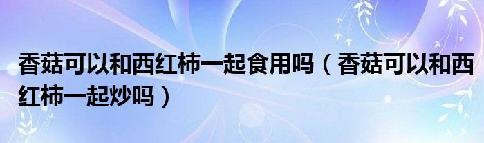 大家好,小生来为大家讲解下。香菇可以和西红柿一起食用吗,香菇可以和西红柿一起炒吗很多人还不知道,现在让我们一起来看看吧!