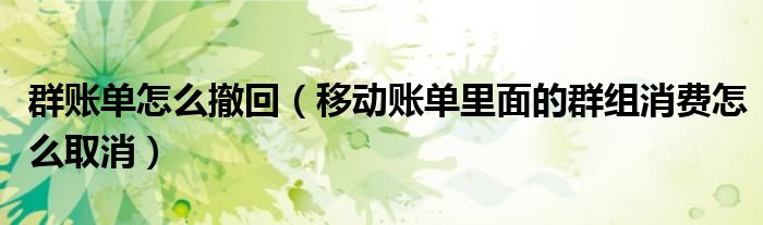 大家好,小生来为大家讲解下。群账单怎么撤回,移动账单里面的群组消费怎么取消很多人还不知道,现在让我们一起来看看吧!
