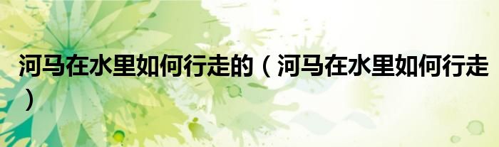 大家好,小生来为大家讲解下。河马在水里如何行走的,河马在水里如何行走很多人还不知道,现在让我们一起来看看吧!