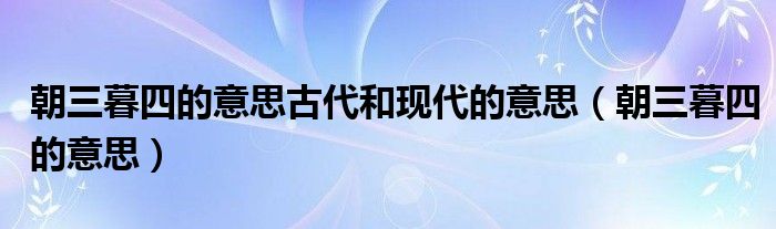 大家好,伊人来为大家解答以上问题。朝三暮四的意思古代和现代的意思,朝三暮四的意思很多人还不知道,现在让我们一起来看看吧!