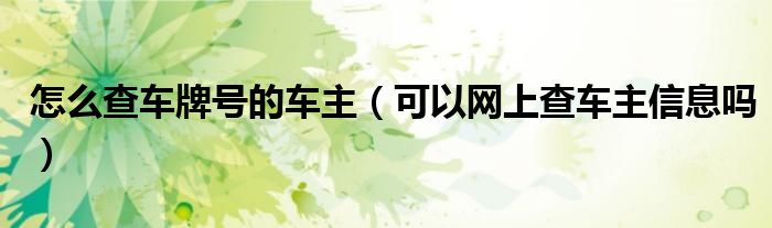 大家好,伊人来为大家解答以上问题。怎么查车牌号的车主,可以网上查车主信息吗很多人还不知道,现在让我们一起来看看吧!