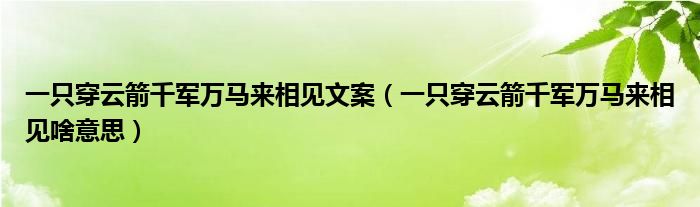 大家好,小生来为大家讲解下。一只穿云箭千军万马来相见文案,一只穿云箭千军万马来相见啥意思很多人还不知道,现在让我们一起来看看吧!