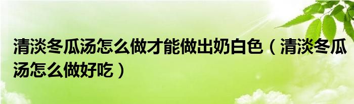 大家好,小生来为大家讲解下。清淡冬瓜汤怎么做才能做出奶白色,清淡冬瓜汤怎么做好吃很多人还不知道,现在让我们一起来看看吧!