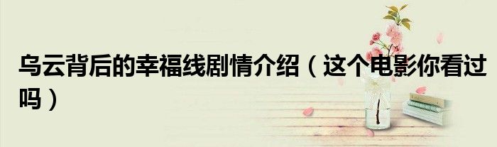 大家好,伊人来为大家解答以上问题。乌云背后的幸福线剧情介绍,这个电影你看过吗很多人还不知道,现在让我们一起来看看吧!