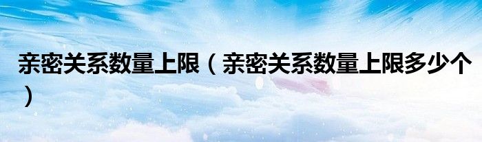 大家好,小生来为大家讲解下。亲密关系数量上限,亲密关系数量上限多少个很多人还不知道,现在让我们一起来看看吧!