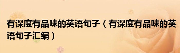 大家好,伊人来为大家解答以上问题。有深度有品味的英语句子,有深度有品味的英语句子汇编很多人还不知道,现在让我们一起来看看吧!