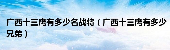 大家好,小生来为大家讲解下。广西十三鹰有多少名战将,广西十三鹰有多少兄弟很多人还不知道,现在让我们一起来看看吧!