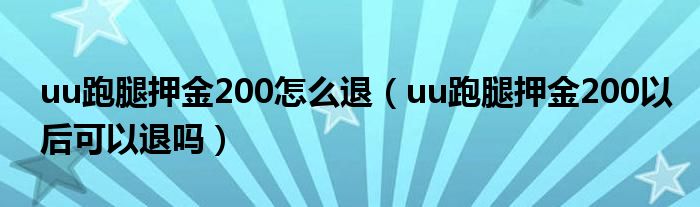 大家好,小生来为大家讲解下。uu跑腿押金200怎么退,uu跑腿押金200以后可以退吗很多人还不知道,现在让我们一起来看看吧!