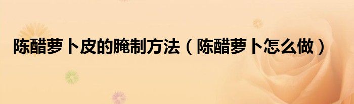 大家好,小生来为大家讲解下。陈醋萝卜皮的腌制方法,陈醋萝卜怎么做很多人还不知道,现在让我们一起来看看吧!