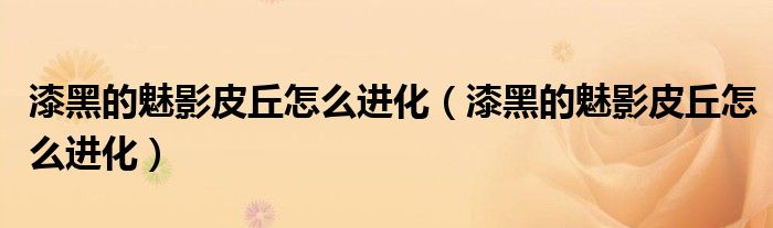 大家好,小生来为大家讲解下。漆黑的魅影皮丘怎么进化,漆黑的魅影皮丘怎么进化很多人还不知道,现在让我们一起来看看吧!