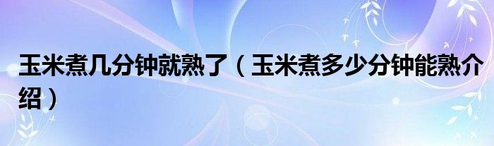 大家好,伊人来为大家解答以上问题。玉米煮几分钟就熟了,玉米煮多少分钟能熟介绍很多人还不知道,现在让我们一起来看看吧!