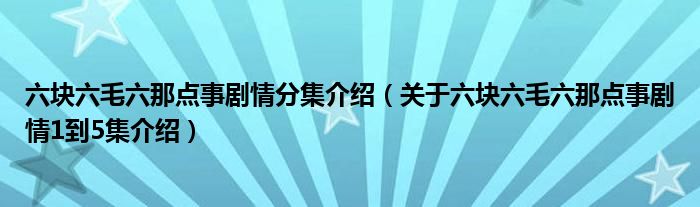 大家好,伊人来为大家解答以上问题。六块六毛六那点事剧情分集介绍,关于六块六毛六那点事剧情1到5集介绍很多人还不知道,现在让我们一起来看看吧!