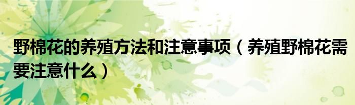 大家好,伊人来为大家解答以上问题。野棉花的养殖方法和注意事项,养殖野棉花需要注意什么很多人还不知道,现在让我们一起来看看吧!