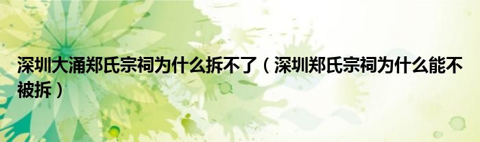 大家好,小育来为大家讲解下。深圳大涌郑氏宗祠为什么拆不了,深圳郑氏宗祠为什么能不被拆很多人还不知道,现在让我们一起来看看吧!