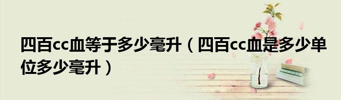 大家好,小育来为大家讲解下。四百cc血等于多少毫升,四百cc血是多少单位多少毫升很多人还不知道,现在让我们一起来看看吧!