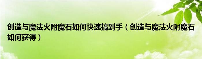 大家好,小育来为大家讲解下。创造与魔法火附魔石如何快速搞到手,创造与魔法火附魔石如何获得很多人还不知道,现在让我们一起来看看吧!