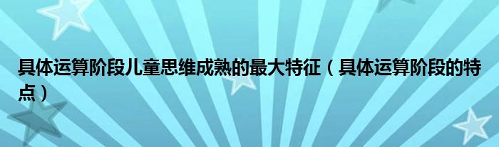 大家好,小育来为大家讲解下。具体运算阶段儿童思维成熟的最大特征,具体运算阶段的特点很多人还不知道,现在让我们一起来看看吧!