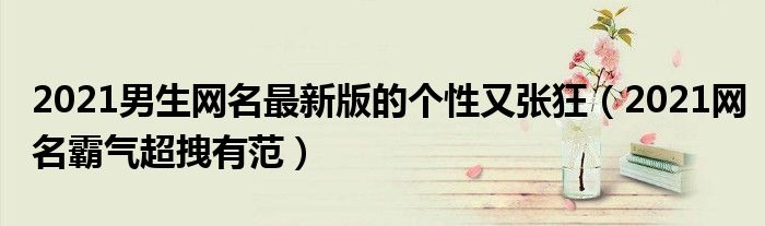 大家好,伊人来为大家解答以上问题。2021男生网名最新版的个性又张狂,2021网名霸气超拽有范很多人还不知道,现在让我们一起来看看吧!