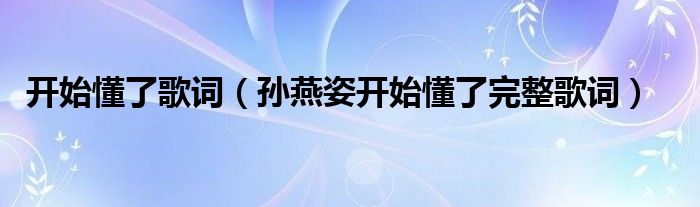 大家好,伊人来为大家解答以上问题。开始懂了歌词,孙燕姿开始懂了完整歌词很多人还不知道,现在让我们一起来看看吧!