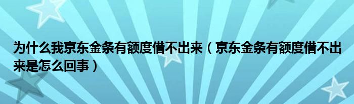 大家好,小育来为大家讲解下。为什么我京东金条有额度借不出来,京东金条有额度借不出来是怎么回事很多人还不知道,现在让我们一起来看看吧!