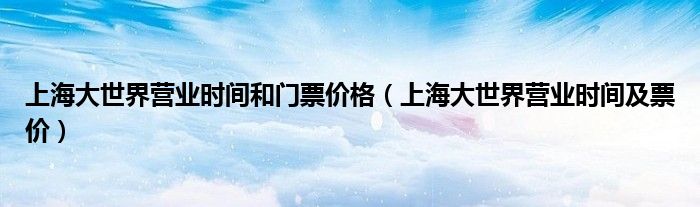 大家好,小育来为大家讲解下。上海大世界营业时间和门票价格,上海大世界营业时间及票价很多人还不知道,现在让我们一起来看看吧!