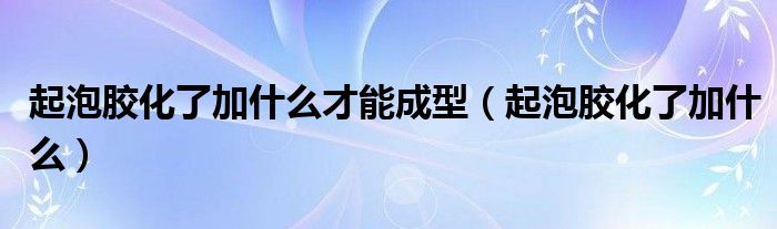 大家好,小育来为大家讲解下。起泡胶化了加什么才能成型,起泡胶化了加什么很多人还不知道,现在让我们一起来看看吧!