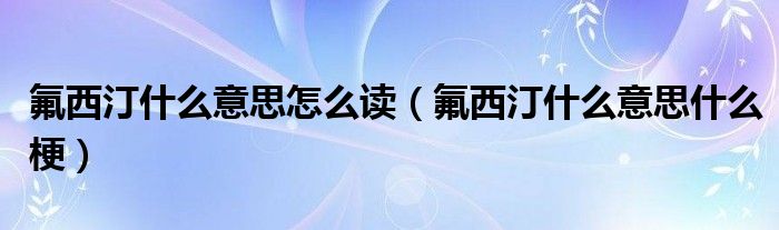 大家好,小育来为大家讲解下。氟西汀什么意思怎么读,氟西汀什么意思什么梗很多人还不知道,现在让我们一起来看看吧!
