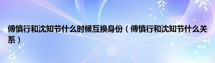 大家好,小育来为大家讲解下。傅慎行和沈知节什么时候互换身份,傅慎行和沈知节什么关系很多人还不知道,现在让我们一起来看看吧!