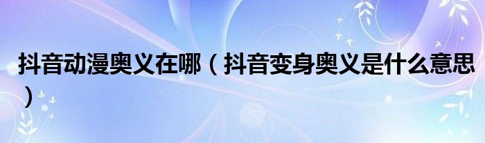 大家好,小育来为大家讲解下。抖音动漫奥义在哪,抖音变身奥义是什么意思很多人还不知道,现在让我们一起来看看吧!