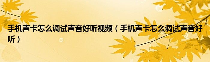 大家好,小育来为大家讲解下。手机声卡怎么调试声音好听视频,手机声卡怎么调试声音好听很多人还不知道,现在让我们一起来看看吧!
