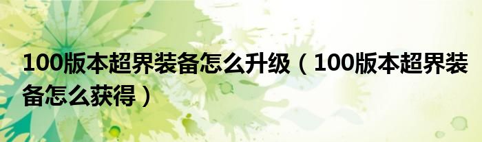 大家好,小育来为大家讲解下。100版本超界装备怎么升级,100版本超界装备怎么获得很多人还不知道,现在让我们一起来看看吧!