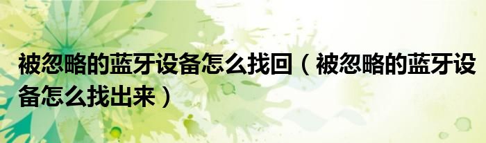大家好,小育来为大家讲解下。被忽略的蓝牙设备怎么找回,被忽略的蓝牙设备怎么找出来很多人还不知道,现在让我们一起来看看吧!