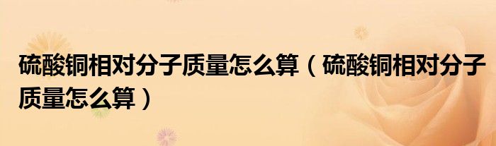大家好,小育来为大家讲解下。硫酸铜相对分子质量怎么算,硫酸铜相对分子质量怎么算很多人还不知道,现在让我们一起来看看吧!