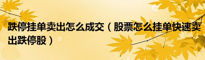 大家好,小育来为大家讲解下。跌停挂单卖出怎么成交,股票怎么挂单快速卖出跌停股很多人还不知道,现在让我们一起来看看吧!