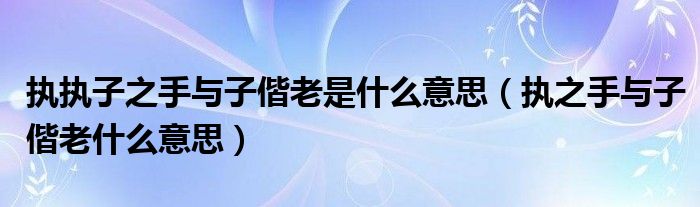 大家好,小育来为大家讲解下。执执子之手与子偕老是什么意思,执之手与子偕老什么意思很多人还不知道,现在让我们一起来看看吧!