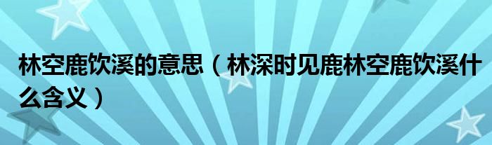 大家好,小育来为大家讲解下。林空鹿饮溪的意思,林深时见鹿林空鹿饮溪什么含义很多人还不知道,现在让我们一起来看看吧!
