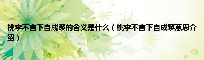 大家好,伊人来为大家解答以上问题。桃李不言下自成蹊的含义是什么,桃李不言下自成蹊意思介绍很多人还不知道,现在让我们一起来看看吧!