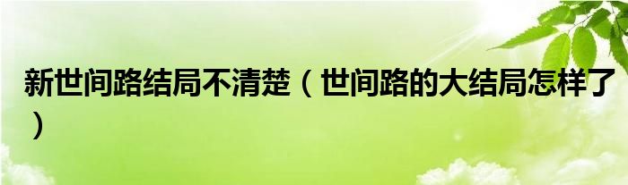 大家好,小育来为大家讲解下。新世间路结局不清楚,世间路的大结局怎样了很多人还不知道,现在让我们一起来看看吧!