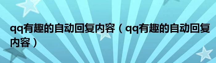 大家好,小育来为大家讲解下。qq有趣的自动回复内容,qq有趣的自动回复内容很多人还不知道,现在让我们一起来看看吧!