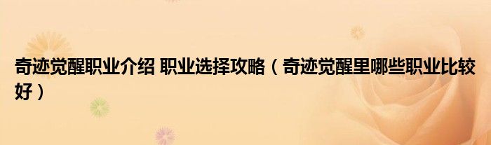 大家好,小育来为大家讲解下。奇迹觉醒职业介绍 职业选择攻略,奇迹觉醒里哪些职业比较好很多人还不知道,现在让我们一起来看看吧!